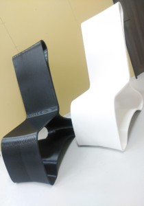 弊社の打ち合わせスペースに配置する椅子です。強度と柔軟性のある樹脂を使用しているため、体重を支えるのはもちろん、ほのかな柔らかみのある仕様になっています。今回は白と、黒の2種類を製作し、本社2階の打ち合わせスペースに配置しております。ぜひご覧ください。
